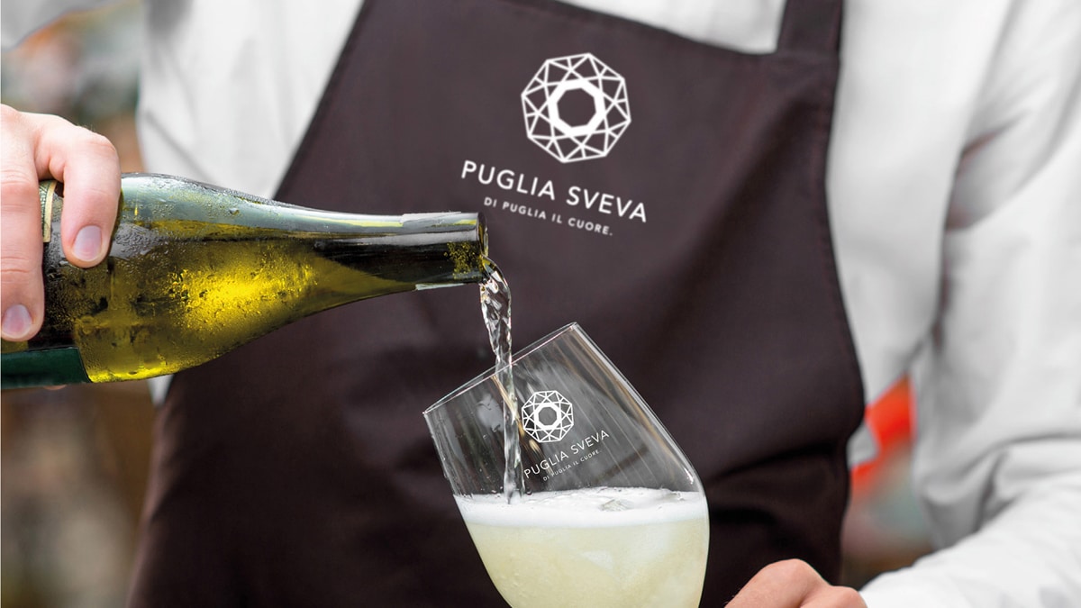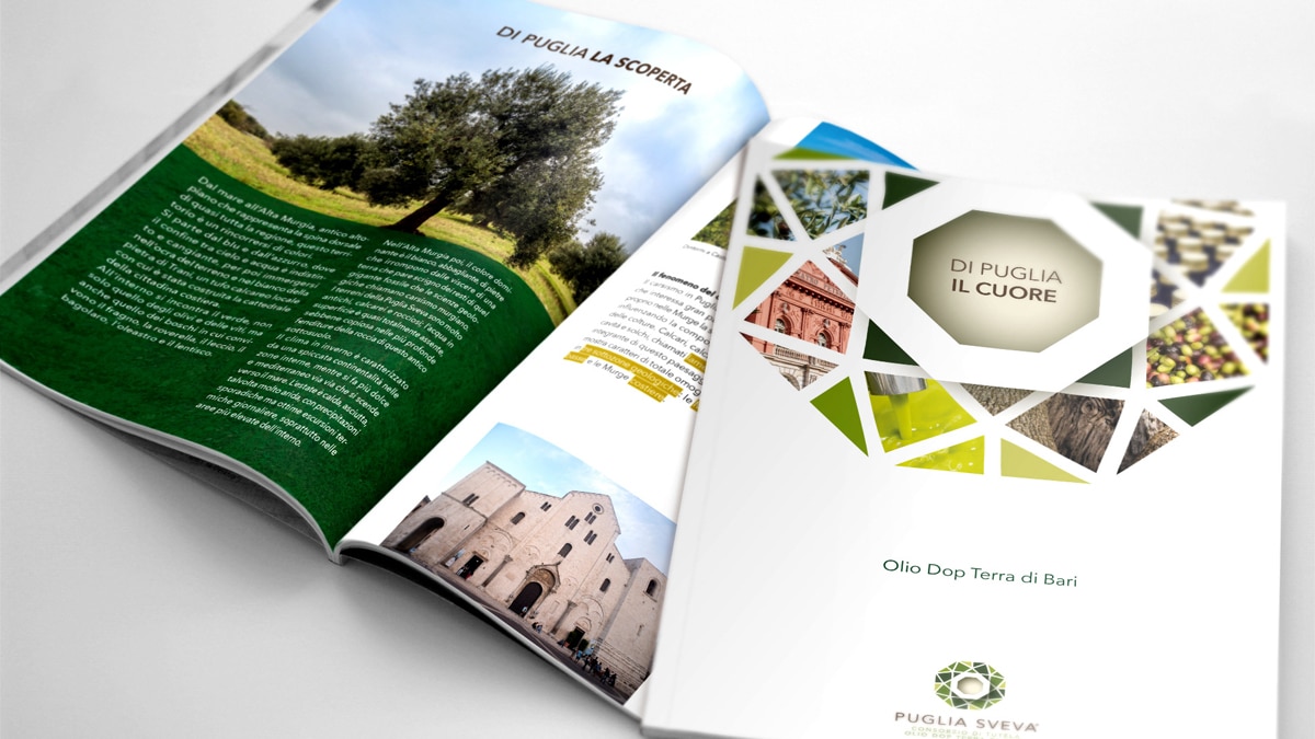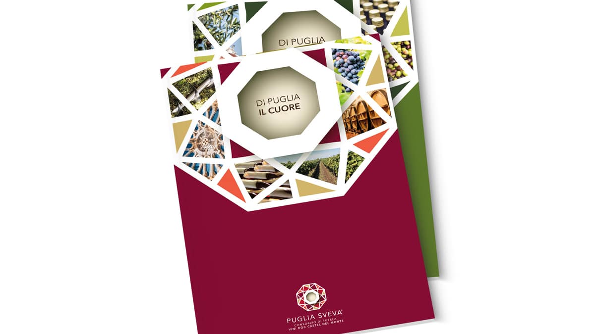 “Nel caso specifico il progetto Puglia Sveva è nato per distinguere la zona geografica dal resto della Puglia. Si trova nel “cuore” della regione, a nord c’è la Daunia e a sud il Salento che, negli ultimi anni, ha acquisito una forte identità e notorietà. La scelta del nome Puglia Sveva è nata per mettere in primo piano le eccellenze di questa terra, amata dall’Imperatore Federico II di Svevia, che diventa “ambasciatore“ dei Vini DOC Castel Del Monte e degli Oli DOP Terra di Bari. Il pay-off evocativo “Di Puglia il cuore” è una sintesi estrema del posizionamento, che non descrive l’attività di produzione, ma sintetizza ed evoca l’approccio con il quale il territorio accoglie i suoi visitatori e l’attenzione nella produzione come filosofia di lavoro. Mentre “Puglia Sveva” affonda nelle radici culturali del territorio, di Puglia il cuore ci porta all’attualità. La declinazione di questi elementi ha permesso di costruire una forte identità verbale dando innumerevoli spunti per lo storytelling. Le headlines di Puglia il meglio, di Puglia il gusto, di Puglia la leggenda e le altre sono frasi sintetiche che rappresentano i vari aspetti del brand che si alternano nei differenti strumenti di comunicazione o a seconda dei contesti d’uso.”