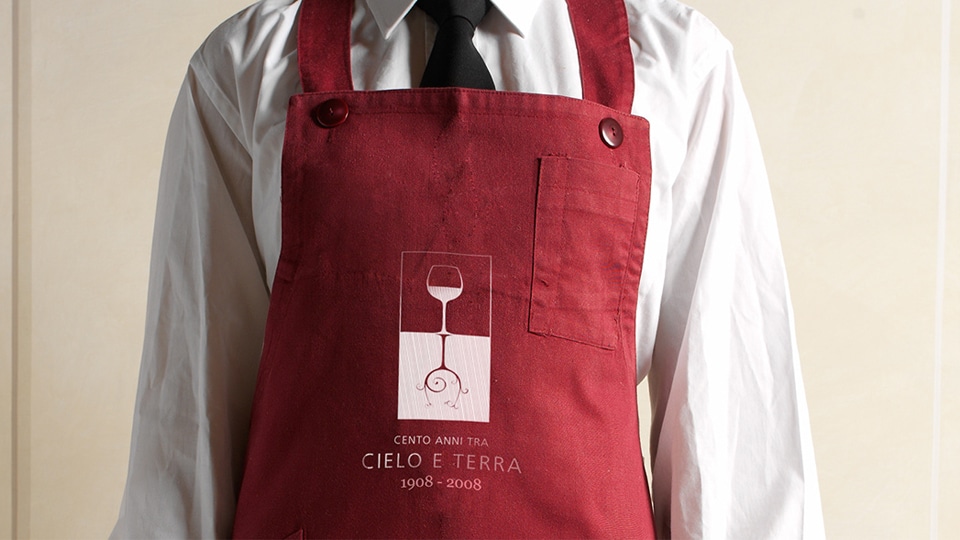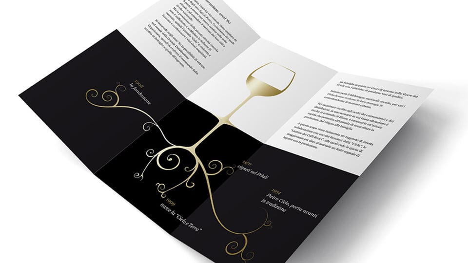 Il concept marchio è stato ispirato dal nome stesso della cantina “Cielo e Terra”; si tratta di una composizione rettangolare formata da due quadrati: quello superiore, un calice, simboleggia la modernità e l’innovazione mentre quello inferiore, radici a forma di viticcio, è un chiaro riferimento a una storia che parte da lontano, un albero genealogico dei momenti cruciali del Gruppo.