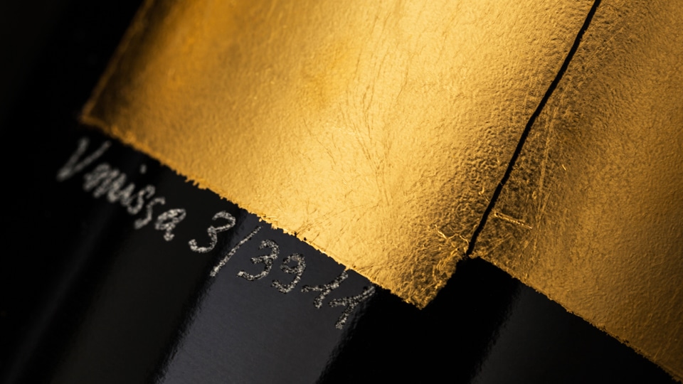 Gli occhi vedono le mille sfumature dell’oro, mentre al palato e all’olfatto le sensazioni sono particolari: una persistenza lunga e costante con note di pesca bianca, miele di barena e, ovviamente, salsedine. È un vino, nei desideri di Bisol, strettamente legato al territorio che lo ospita anche nel packaging: se la forma della bottiglia è volutamente particolare e unica, l’etichetta è in realtà una sottile foglia d’oro, che viene ancora oggi battuta a mano dall’ultimo battiloro superstite in laguna e successivamente fusa all’interno del vetro, realizzato a Murano.